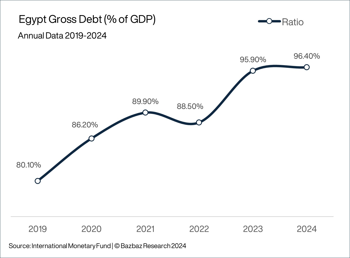 Moreover, the project is placing a significant strain on Egypt’s economy, which is already struggling with high debt and a weakening currency. With their debts being in foreign currency, the country is struggling with a dollar shortage, making it more difficult to pay them down. Debt-to-GDP stood at 96.4%, according to the International Monetary Fund (IMF), which also increased Egypt’s bailout loan from $3 billion to $8 billion in March 2024 (Chart 1).